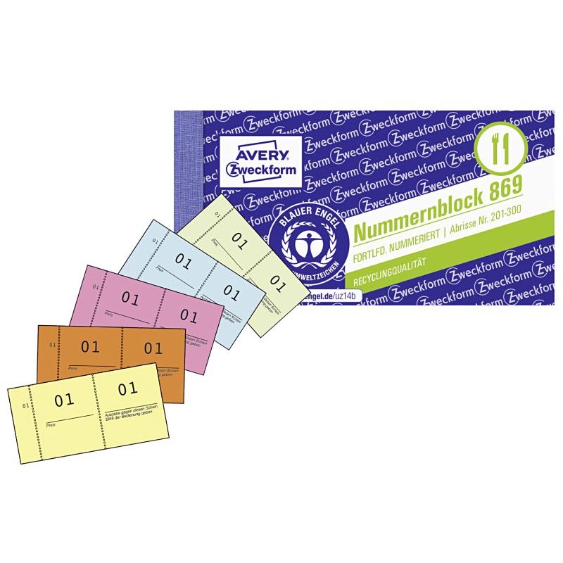 ANGEBOT AVERY ZWECKFORM Nummernblock 869 1-1000 105x53mm 5-farbig