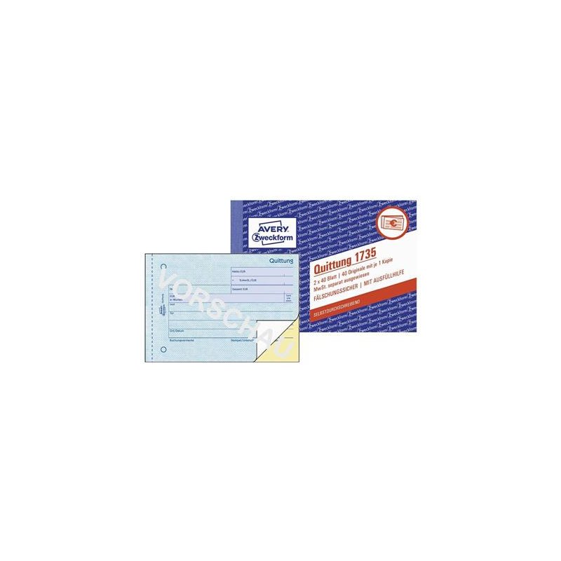 ANGEBOT AVERY ZWECKFORM Quittung 1735 A6, mit MwSt. 2×40 Blatt