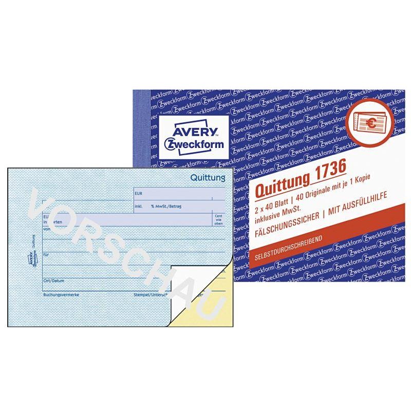 ANGEBOT AVERY ZWECKFORM Quittung 1736 A6 2×40 Blatt