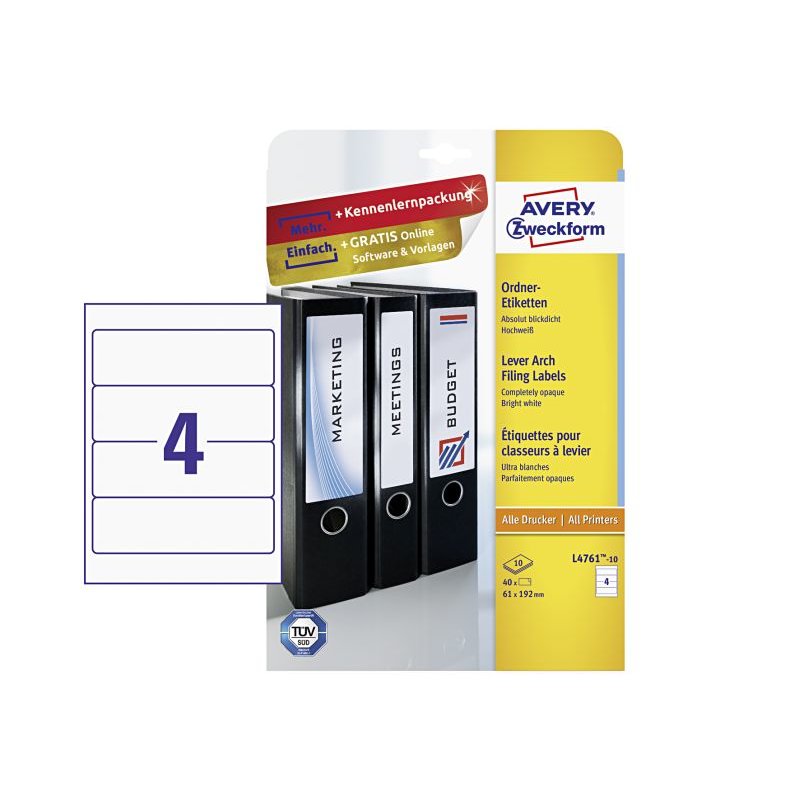 ANGEBOT AVERY ZWECKFORM Ordner-Etiketten L4761-10 breit 61x192mm weiß 40 Stück