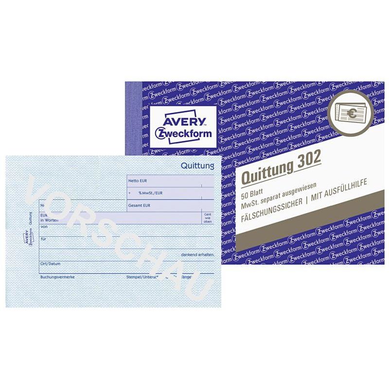 ANGEBOT AVERY ZWECKFORM Quittung 302 A6 50 Blatt