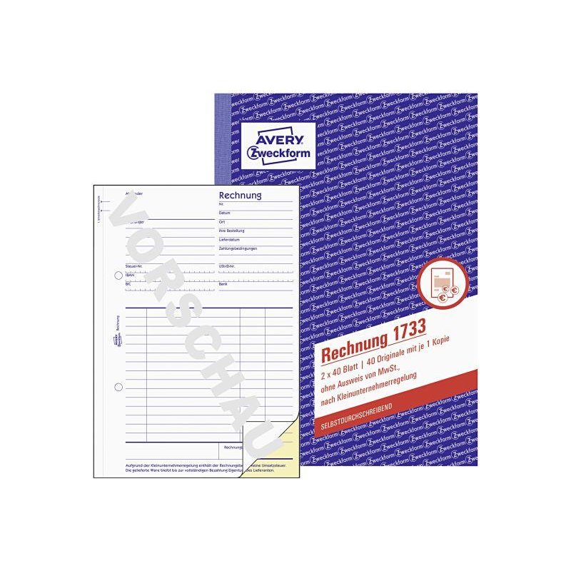 ANGEBOT AVERY ZWECKFORM Rechnung 1733 A5 2×40 Blatt